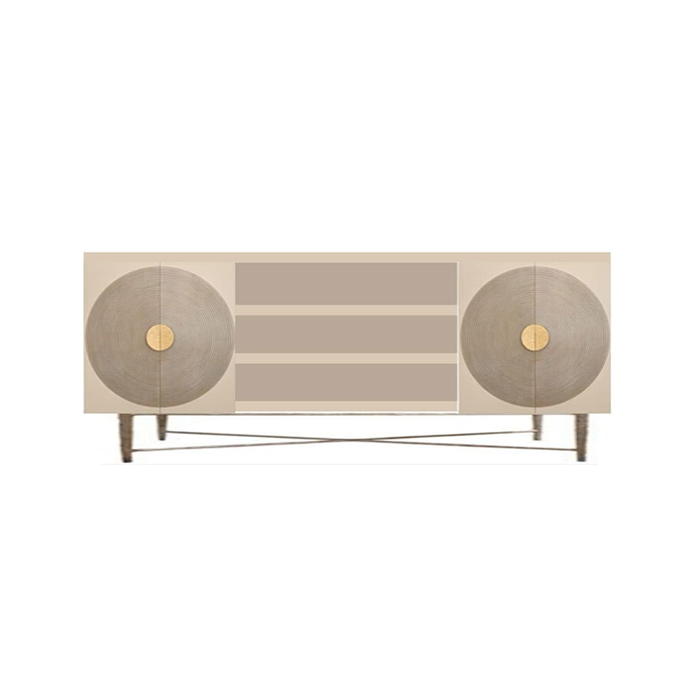 میز تلویزیون درب دار مکعب طرح دایره پایه فلز کرم