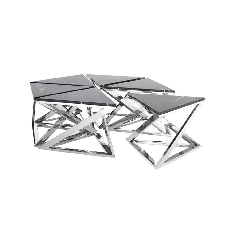 جلو مبلی استیل 6ضلعی 6تکه صفحه سنگ نقره ای