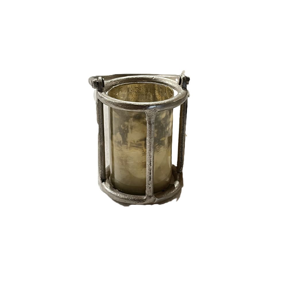 جاشمعی استوانه نیکل و شیشه دسته دار کوچک نقره ای