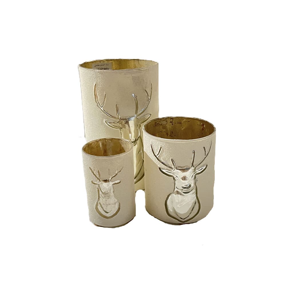 ست 3عددی جاشمعی شیشه طرح گوزن کرم
